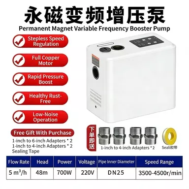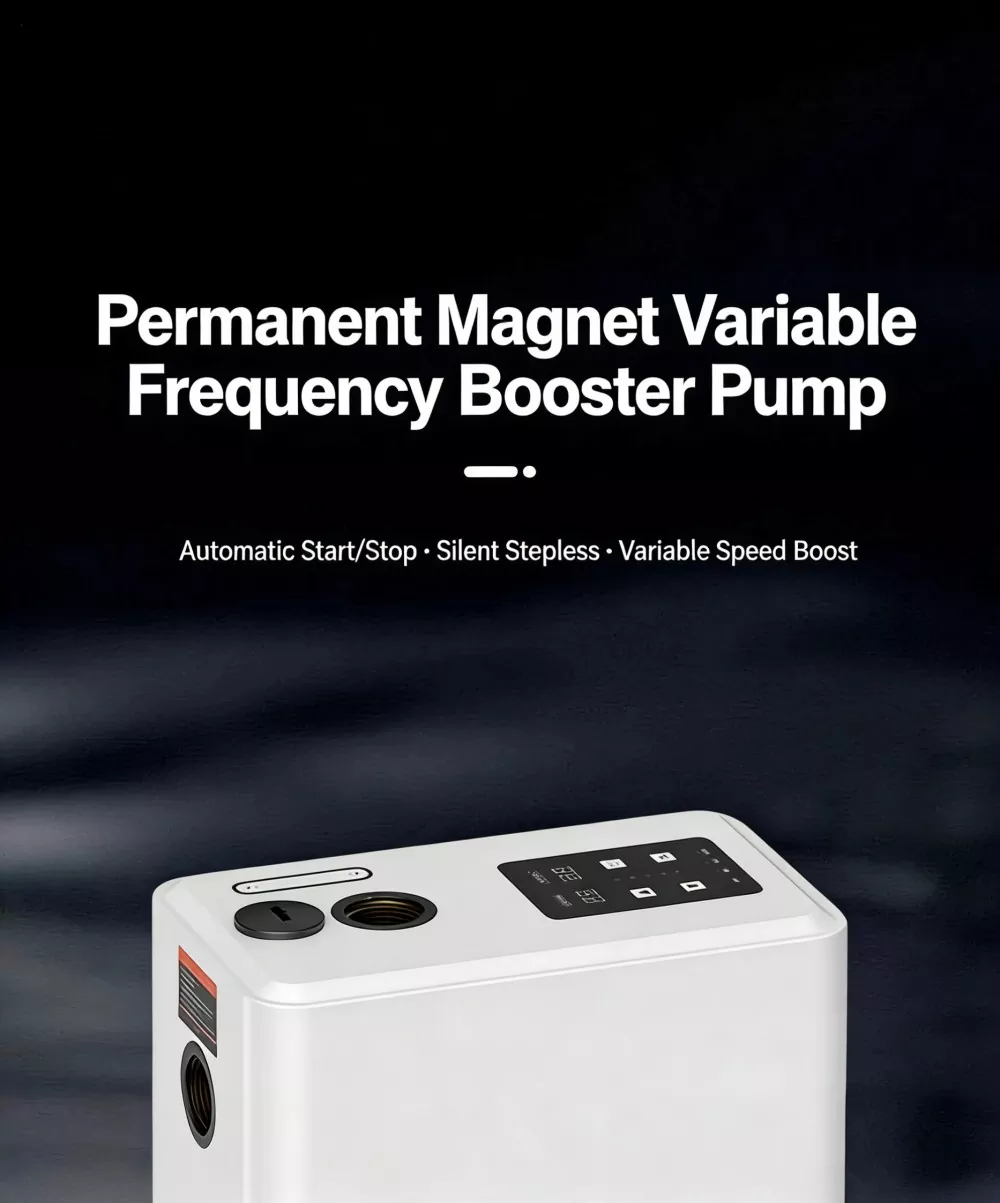 Nuestra bomba de refuerzo de frecuencia variable de imán permanente está diseñada para resolver los problemas comunes de baja presión de agua en el hogar, integrando control inteligente, rendimiento de alta eficiencia y diseño centrado en el usuario para mejorar completamente su experiencia diaria de uso del agua.
