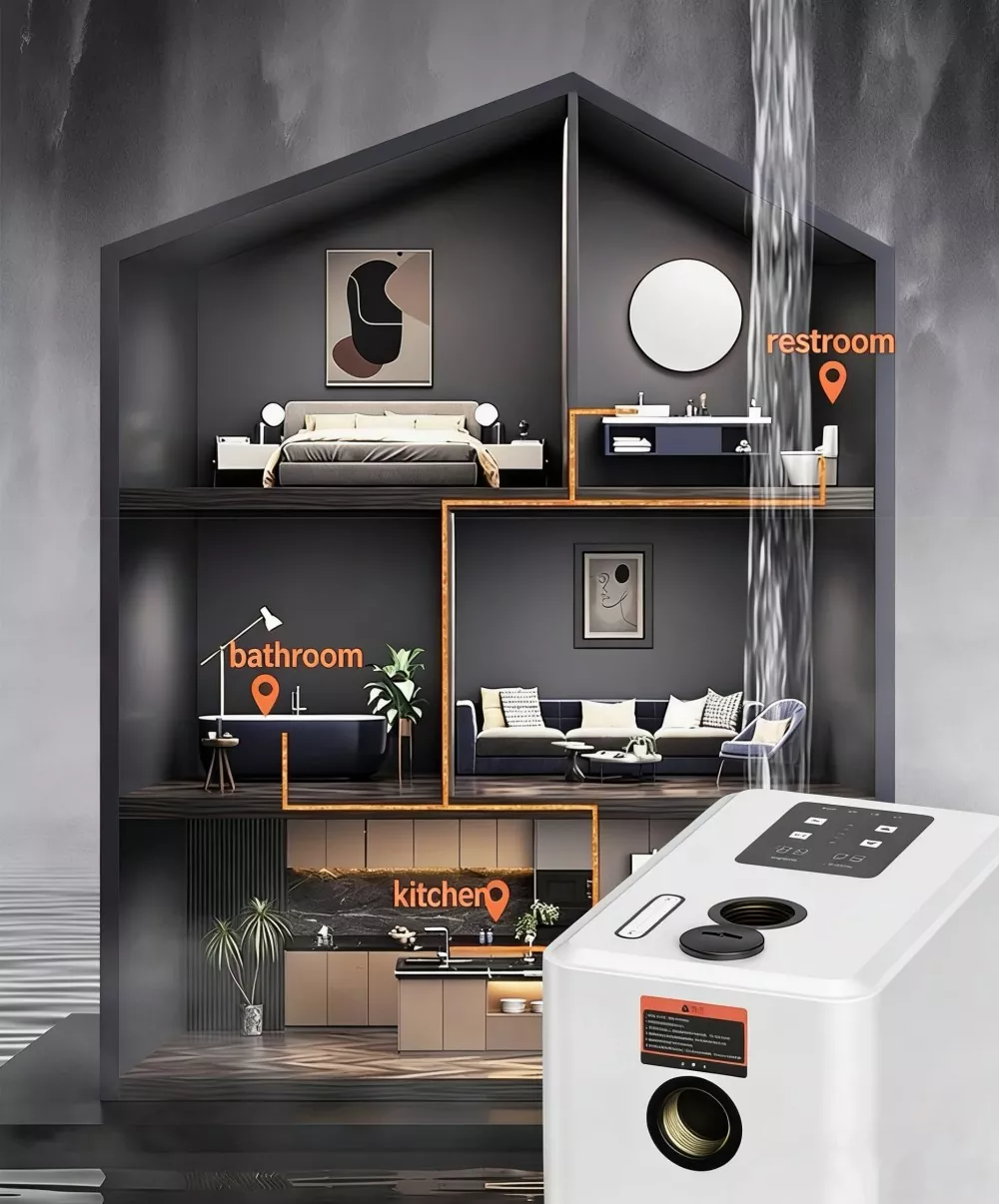 Arranque/parada inteligente AI: Equipado con tecnología de detección de flujo de agua de alta precisión, se inicia automáticamente cuando se detecta flujo de agua y se apaga inmediatamente cuando se detiene el suministro de agua, no se requiere operación manual ni ajustes repetidos durante todo el proceso.