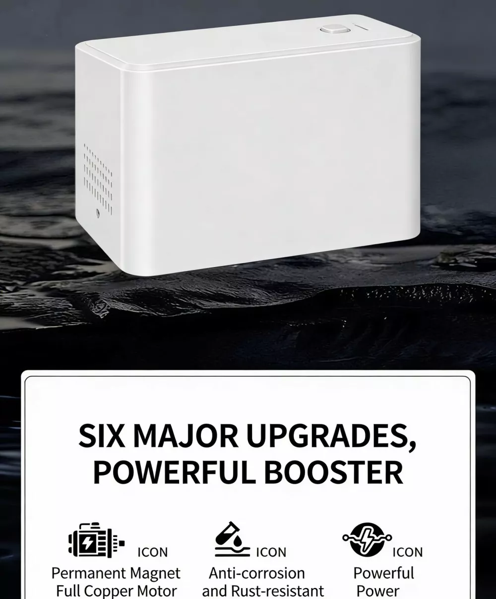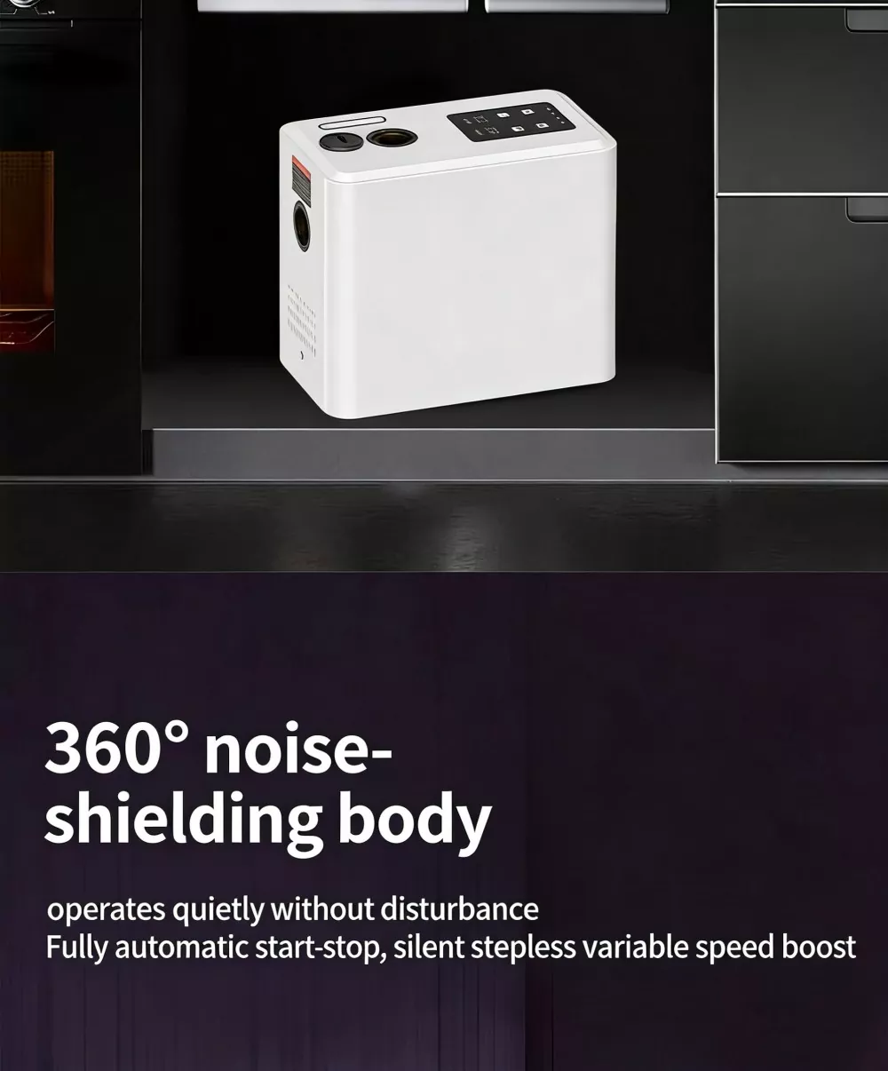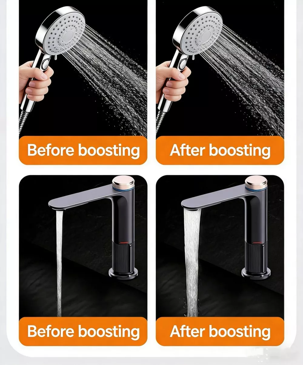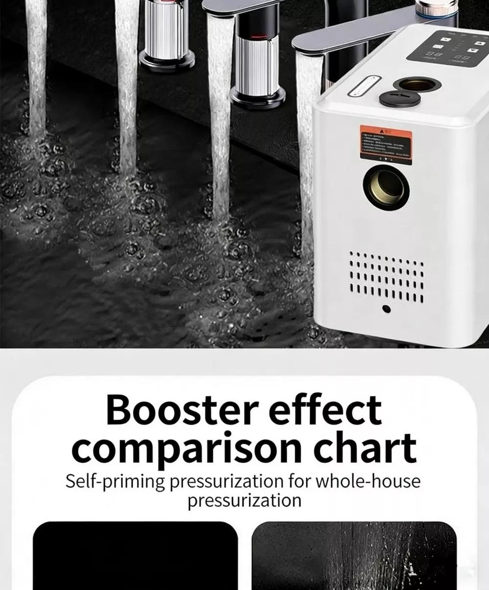 Motor de alta velocidad: el motor de alta velocidad incorporado de 6500 RPM brinda potencia creciente, ofrece una salida de agua de gran flujo fuerte y estable y resuelve completamente el problema de la presión insuficiente del agua en el hogar.
