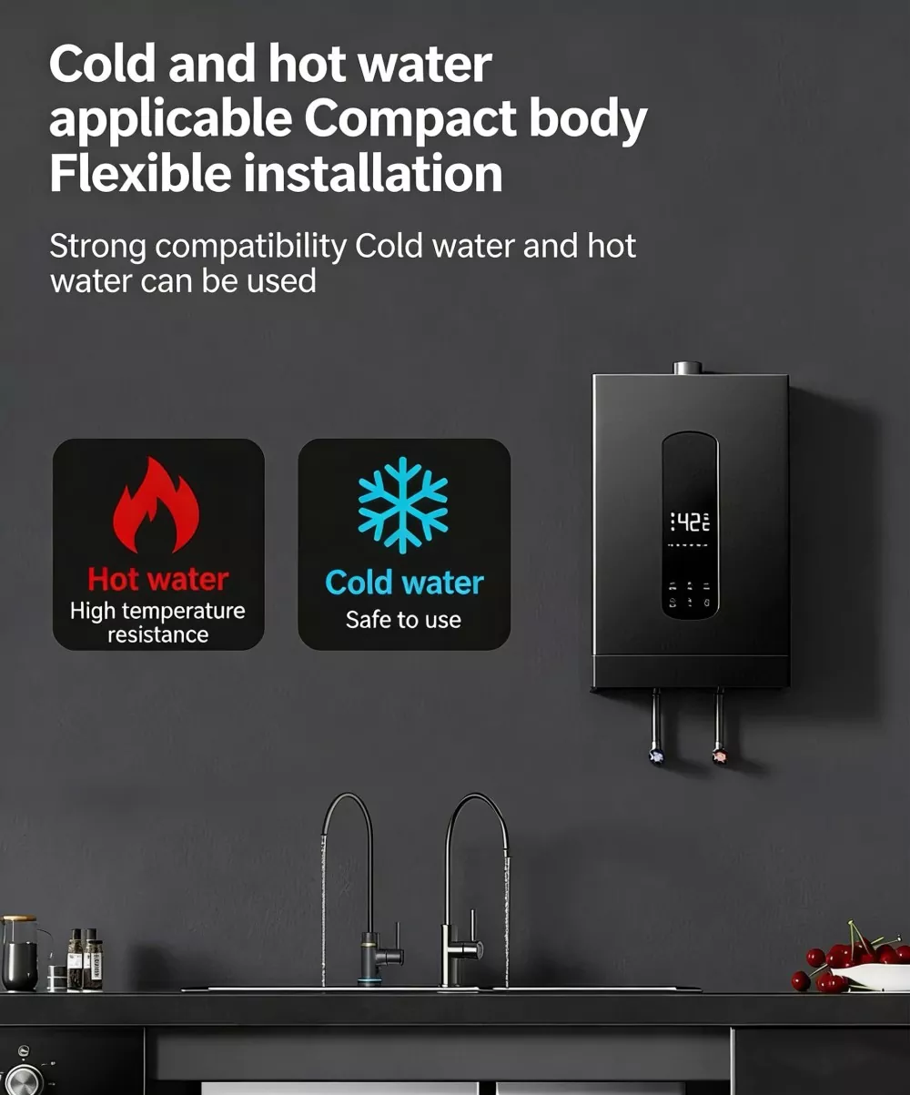 Amplia aplicación: admite una amplia adaptación de temperatura, se puede usar tanto para agua fría como caliente y es totalmente adecuado para escenarios domésticos como duchas, grifos, calentadores de agua y aumento de presión del suministro de agua en toda la casa.