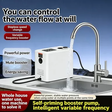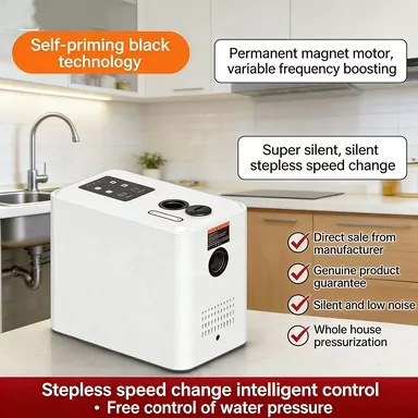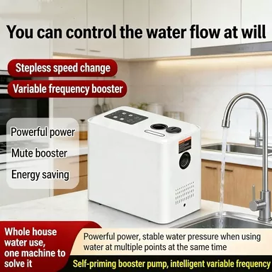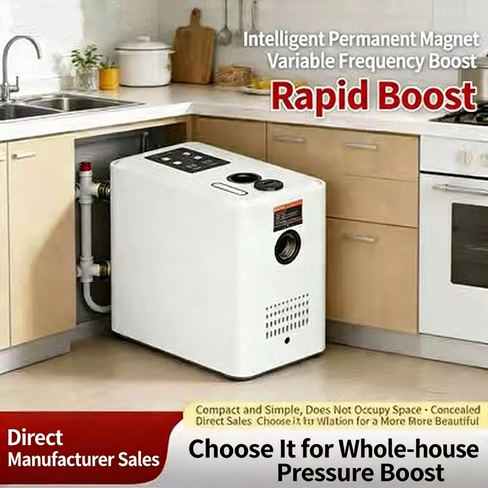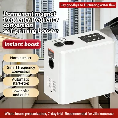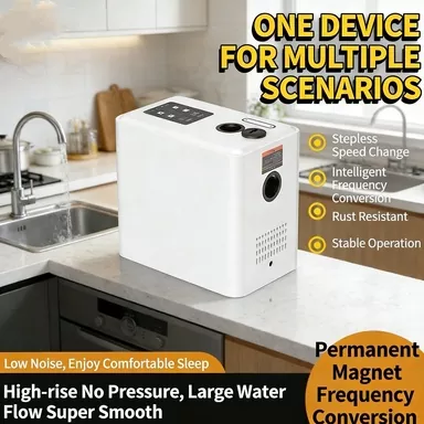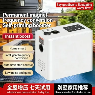 La bomba de refuerzo de frecuencia variable de imán permanente se puede personalizar y es perfecta para bajas presiones de agua en el hogar. Fuerte autoaspiración de hasta 8 metros, aumento rápido de presión, flujo de agua constante. Silencioso, ahorro de energía, fácil instalación. Ideal para grifos domésticos, duchas y calentadores de agua.