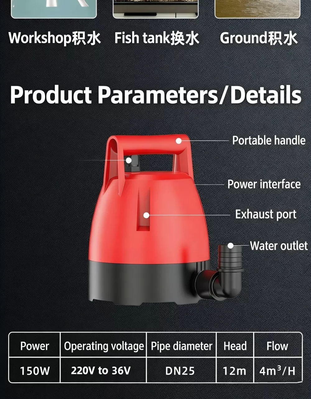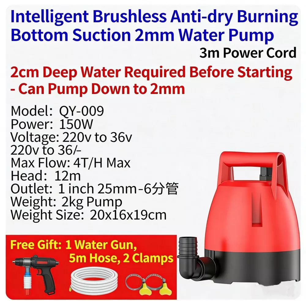 La bomba sumergible es una solución de drenaje compacta y de alta eficiencia diseñada para uso doméstico y comercial ligero. Con succión ultrabaja, entrada de agua de 360°, protección automática y funcionamiento silencioso, ofrece una eliminación de agua estable, segura y conveniente en múltiples escenarios. Esta confiable bomba sumergible resuelve eficazmente los problemas de agua acumulada, limpieza de tanques y drenaje de agua estancada, lo que la convierte en una opción práctica para el uso diario.