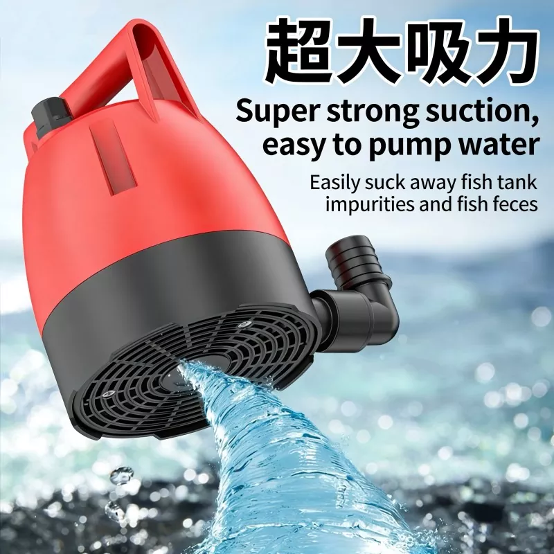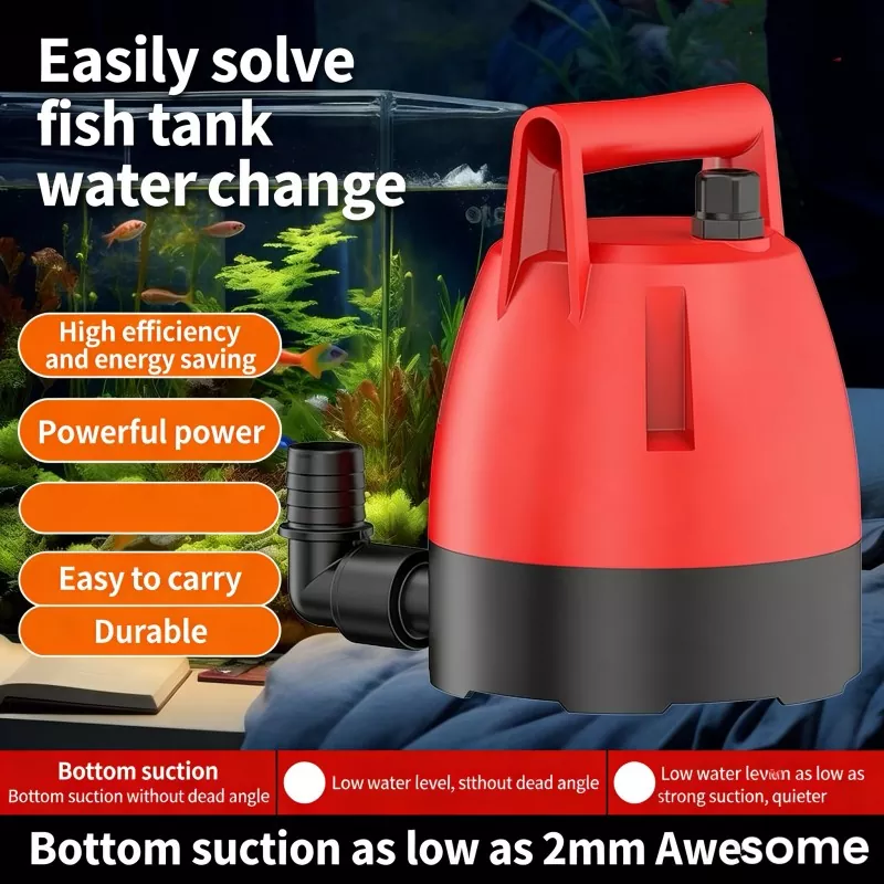 Alto flujo y fuerte succión: ofrece una fuerte salida de agua para eliminar rápidamente grandes volúmenes de agua, mientras limpia eficientemente los desechos de peces y las impurezas en las peceras.
