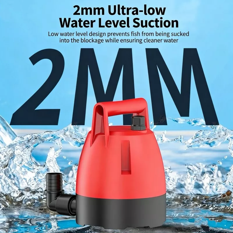 Funcionamiento ultrasilencioso: funciona con poco ruido, lo que hace que la bomba sumergible sea adecuada para hogares, peceras y otros entornos sensibles al ruido.